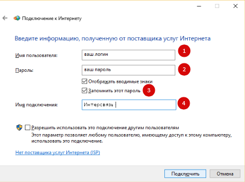 :: ИНТЕРСВЯЗЬ (Барнаул) > Техническая поддержка - Настройка PPPoE соединений - Windows 10